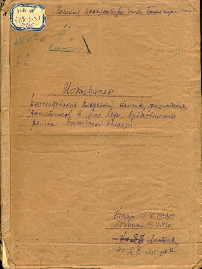 Адно з першых афіцыйных расследаванній злачынстваў фашыстаў было праведзена пракуратурай воінскай часткі, якая вызвалівала Віцебскую вобласць восенню 1943 года